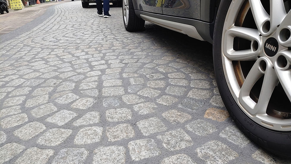 저속도로, 보행로, 광장, 건축물 주변에 이용되는 블록포장은 포장의